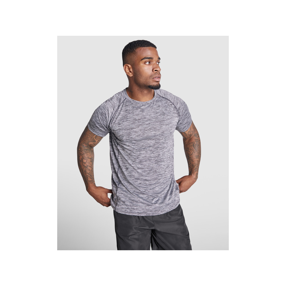 T-shirt technique en tissu polyester, manche courte style raglan. Col rond.