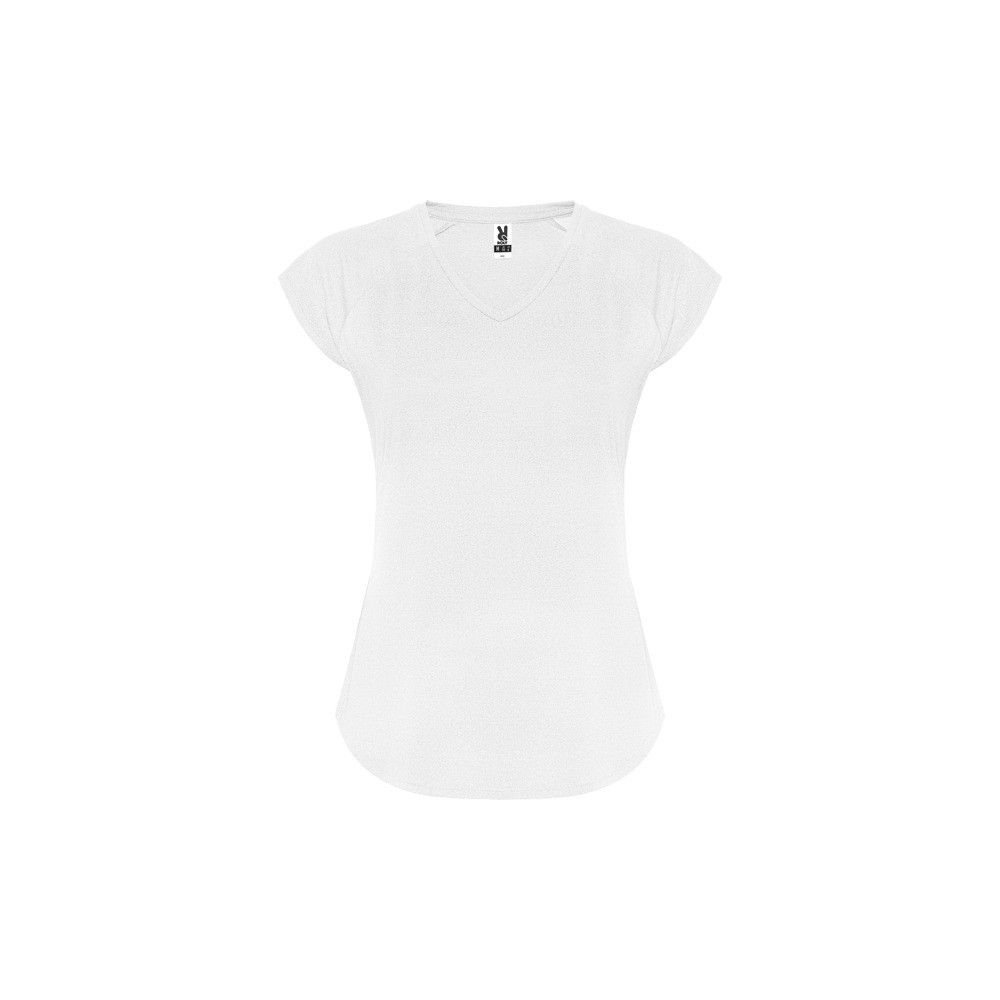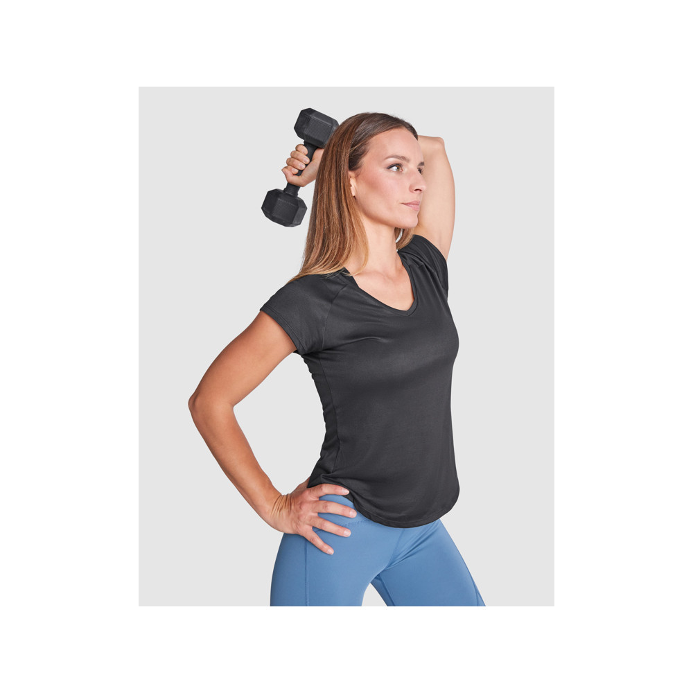 T-shirt technique multisport pour femme, manches courtes style raglan. Col V.