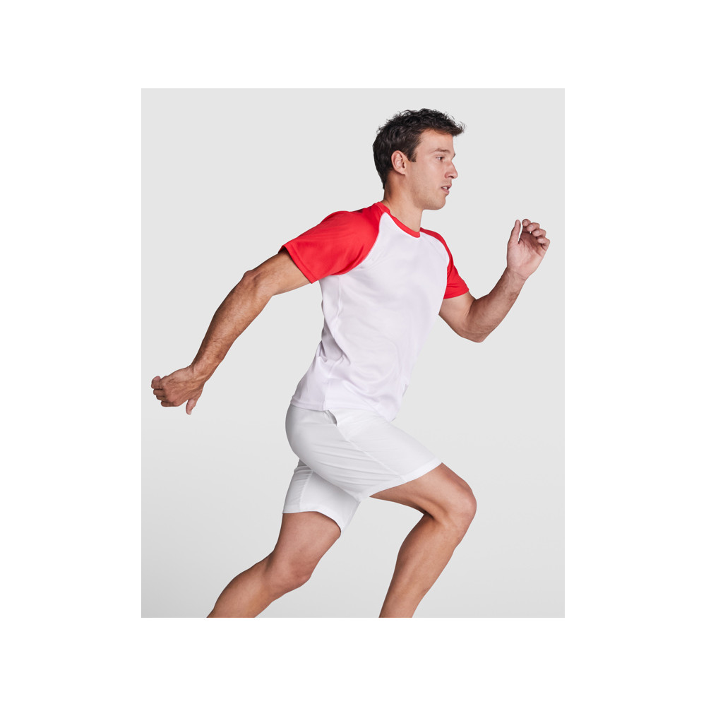 T-shirt sportif manches courtes raglans contrastées. Col rond contrasté avec bande de propreté renforcée à l'interieur.