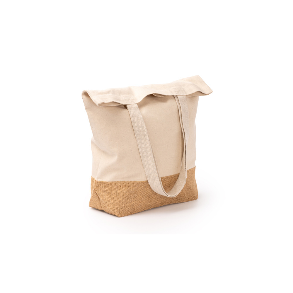 Sac en coton recyclé 330 gsm et yute naturel. Poignées de 70 cm de long.Destinataire :