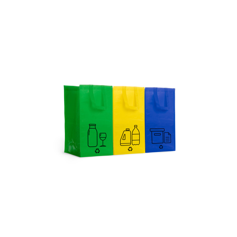 Ensemble de 3 sacs de recyclage en pp tissé laminé résistant avec velcro latéral et poignées renforcées.Destinataire :