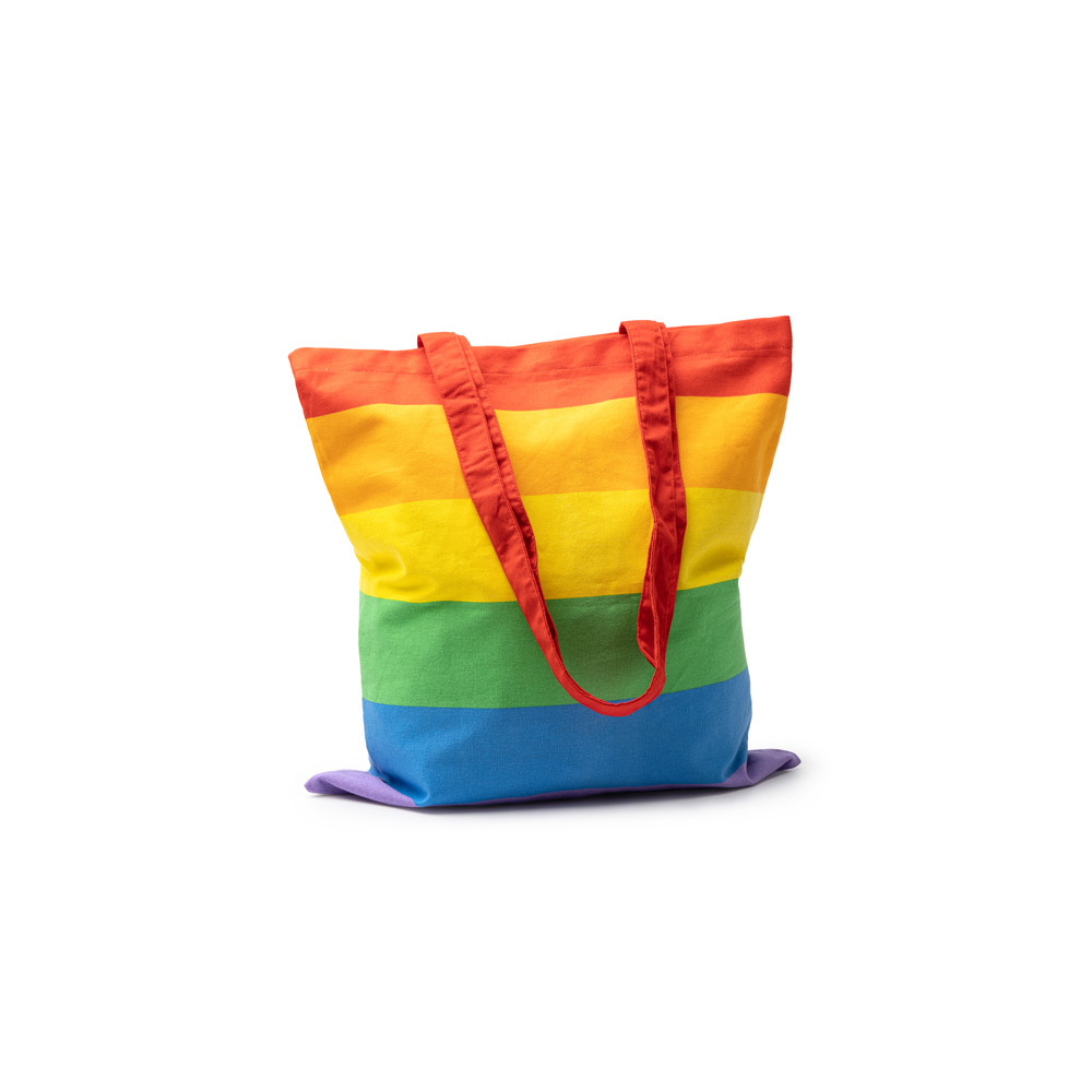Sac Tote bag multicolore 100 % coton du commerce équitable (180 g/m ²), avec poignées renforcées de 70 cm de long.Destinataire :