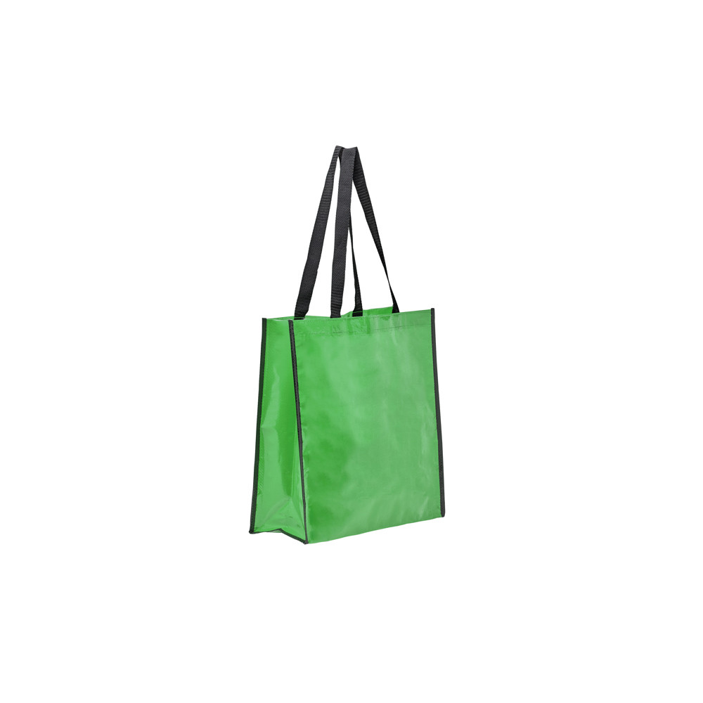 Sac laminé brillant 120gsm sans fermeture. Poignées en nylon avec surpiqûres en X et passepoil noir.Destinataire :