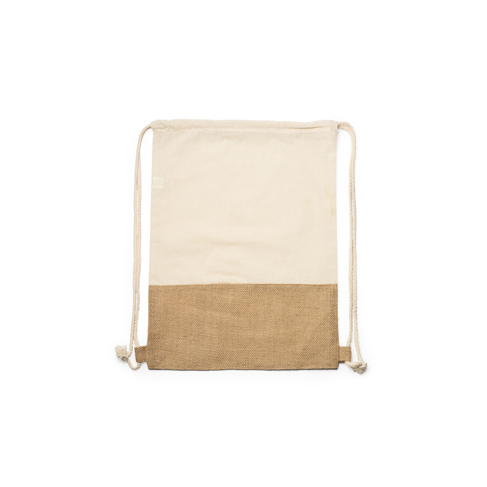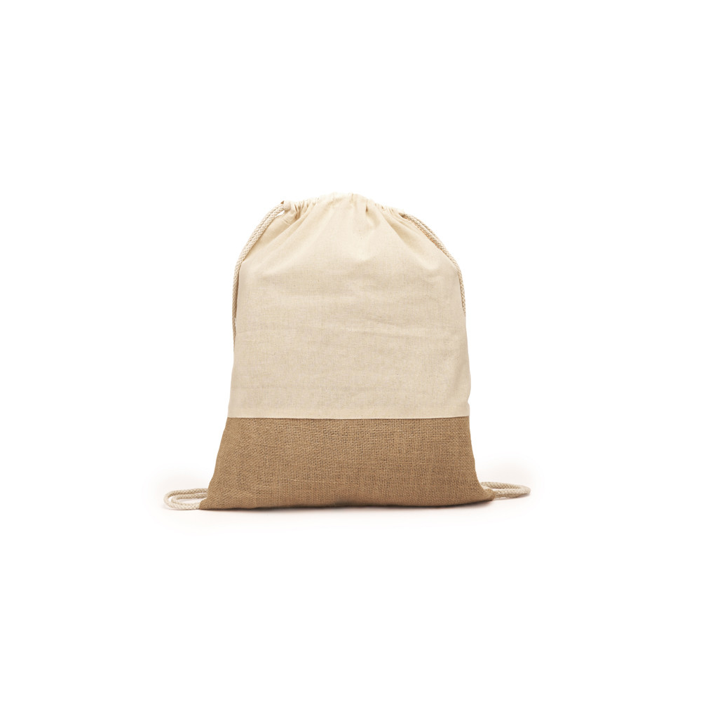 Sac à dos avec cordon de serrage en coton éco ligne 120 g / m² et jute. Couleur naturelle. Le devant du sac à dos comporte une bande de jute en bas. Cordons cousus aux deux coins inférieursDestinataire :