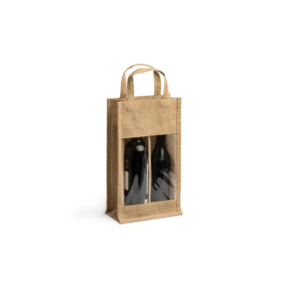 Sac jute laminé avec fenêtre et double compartiment. Parfait pour les bouteilles. Anses renforcées.Destinataire :