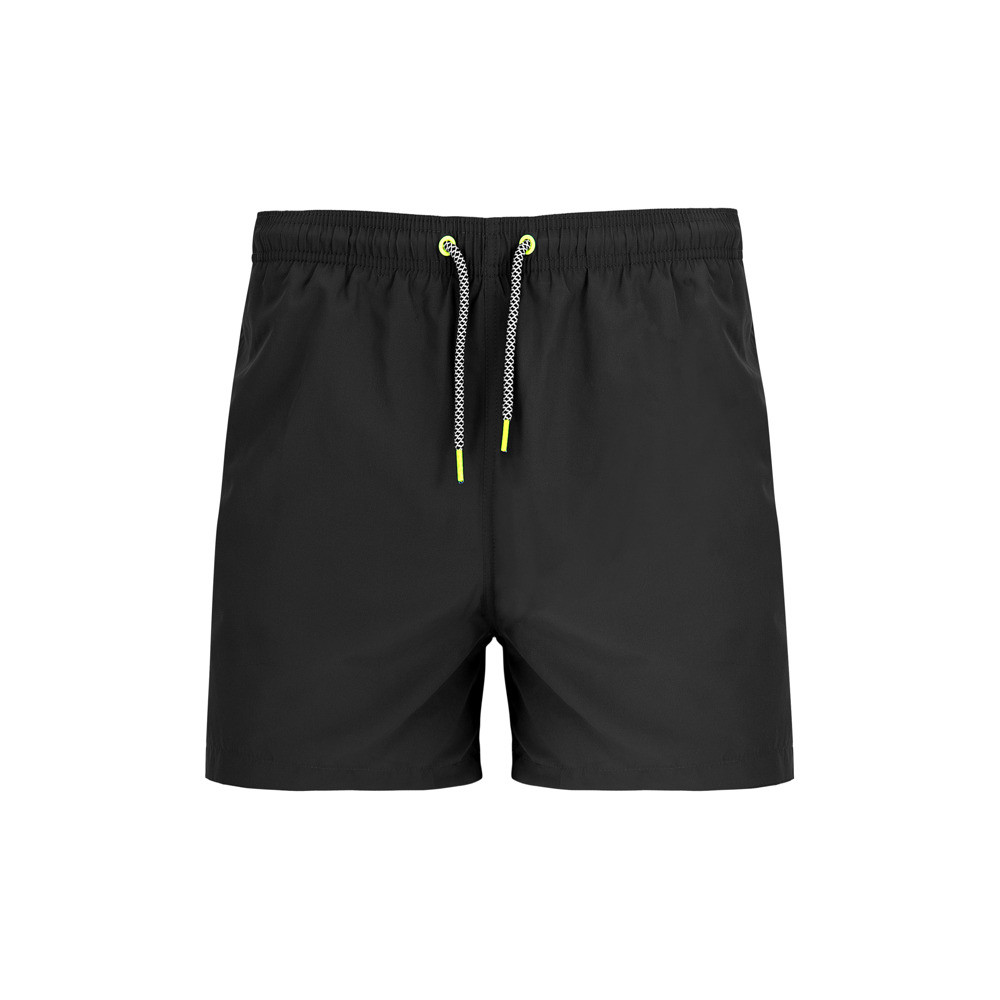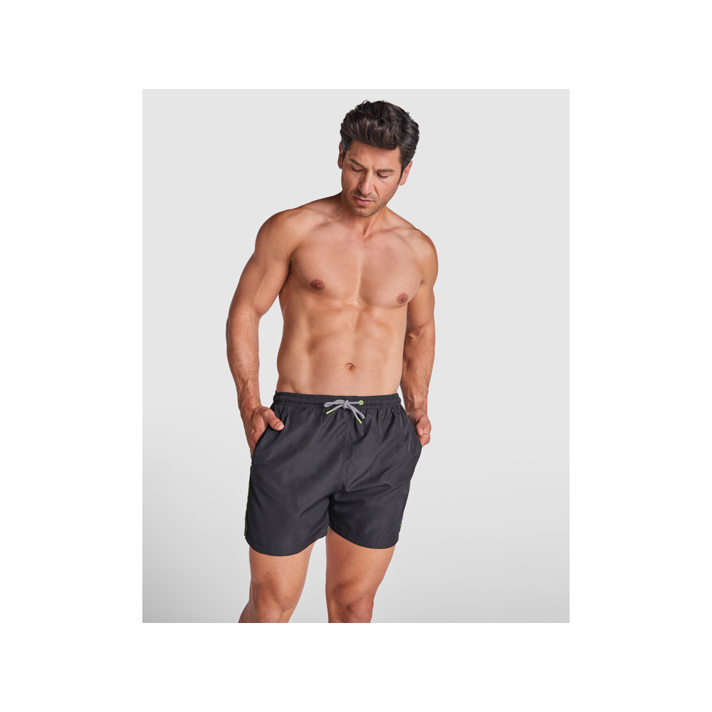 Maillot de bain avec deux poches laterales. Ceinture élastique avec cordons de serrage décoratifs ajustables et oeillet métalique en contraste. Lateraux avec vifs en contraste. Poche arrière avec oeillet pour égouter.