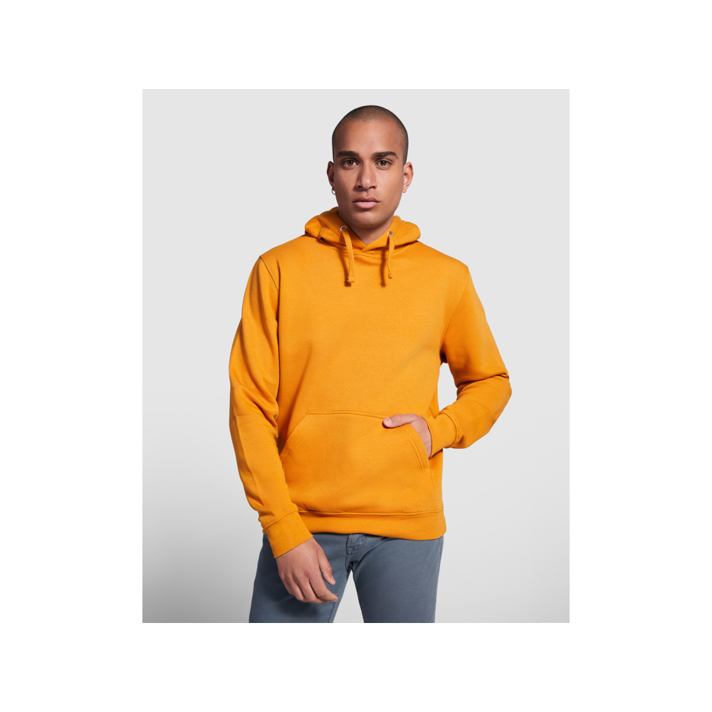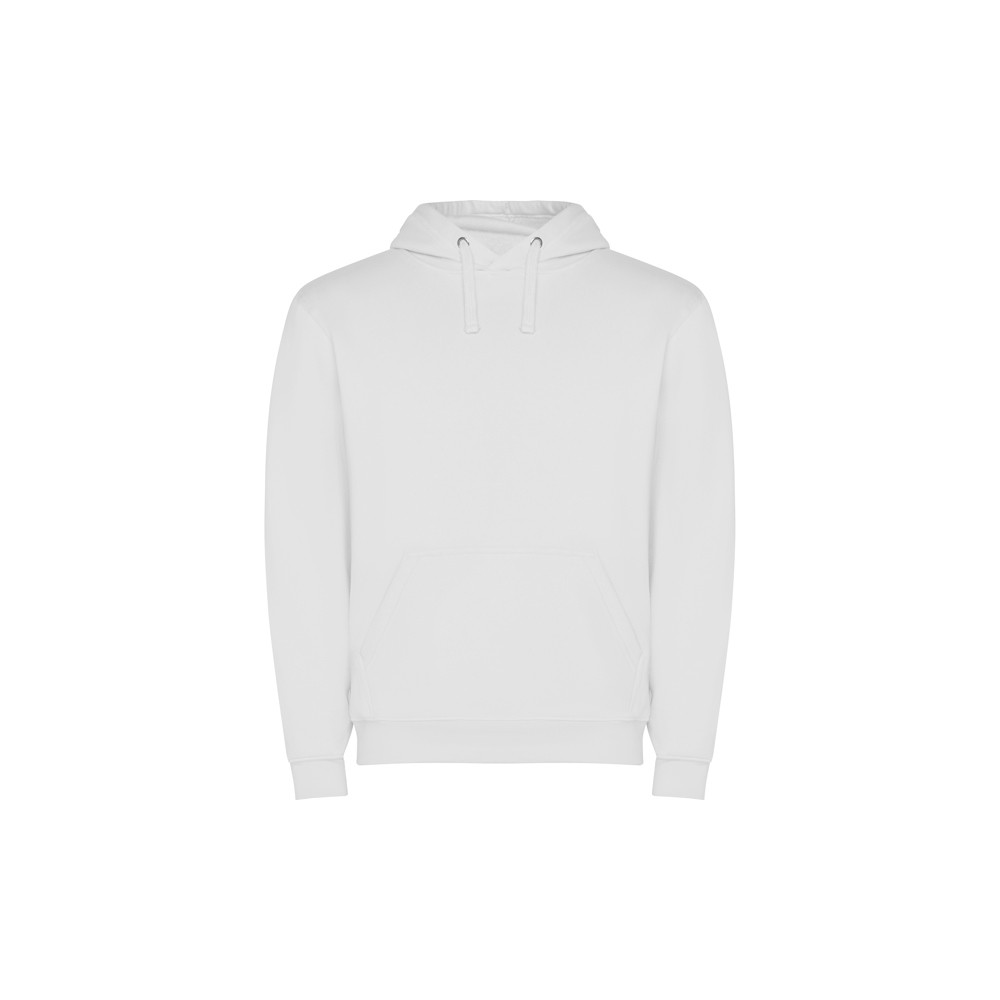 Sweat-shirt capuche avec poche kangourou et cordon de serrage. Poignets et ceinture avec élasthanne en côte 1x1. Modèle enfant sans cordon de serrage.