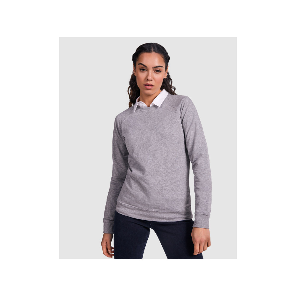 Sweat en coton manches longues raglan. Avec col, poignets et ceinture en côte 2x1. Col rond avec bande de propreté renforcée à l'intèrieur. Détail centré de coutures croisées avec côte 2x1.