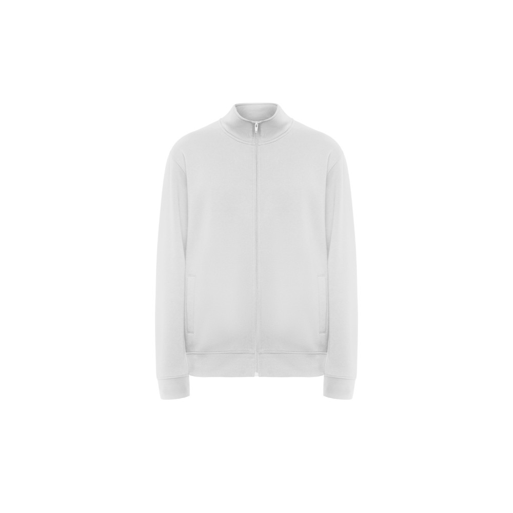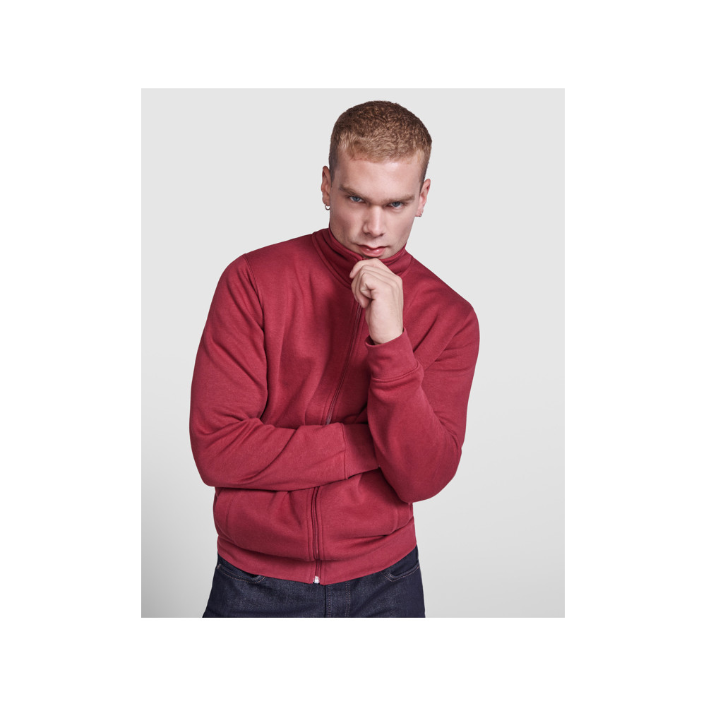 Sweat avec encolure montante et zip au ton. Vue intérieure du col dans le même ton avec bande de propreté renforcée. Maille en côte 1x1 aux poignets et à la taille.
