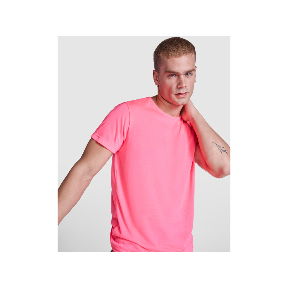 T-shirt manches courtes en couleurs fluo. Col rond, bande de propreté intérieur renforcée. Fabriqué en polyester avec un touché coton.
