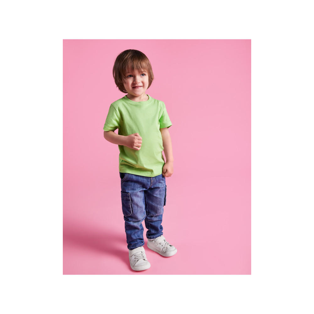T-shirt manches courtes, spécial pour bébé, tissé en jauge fine pour un rendu plus compact. Col rond et ouverture à l'épaule avec boutons pressions, de la taille 6m à la 18m. les tailles 2A sont sans ouverture a l´épaule. Coutures latérales.