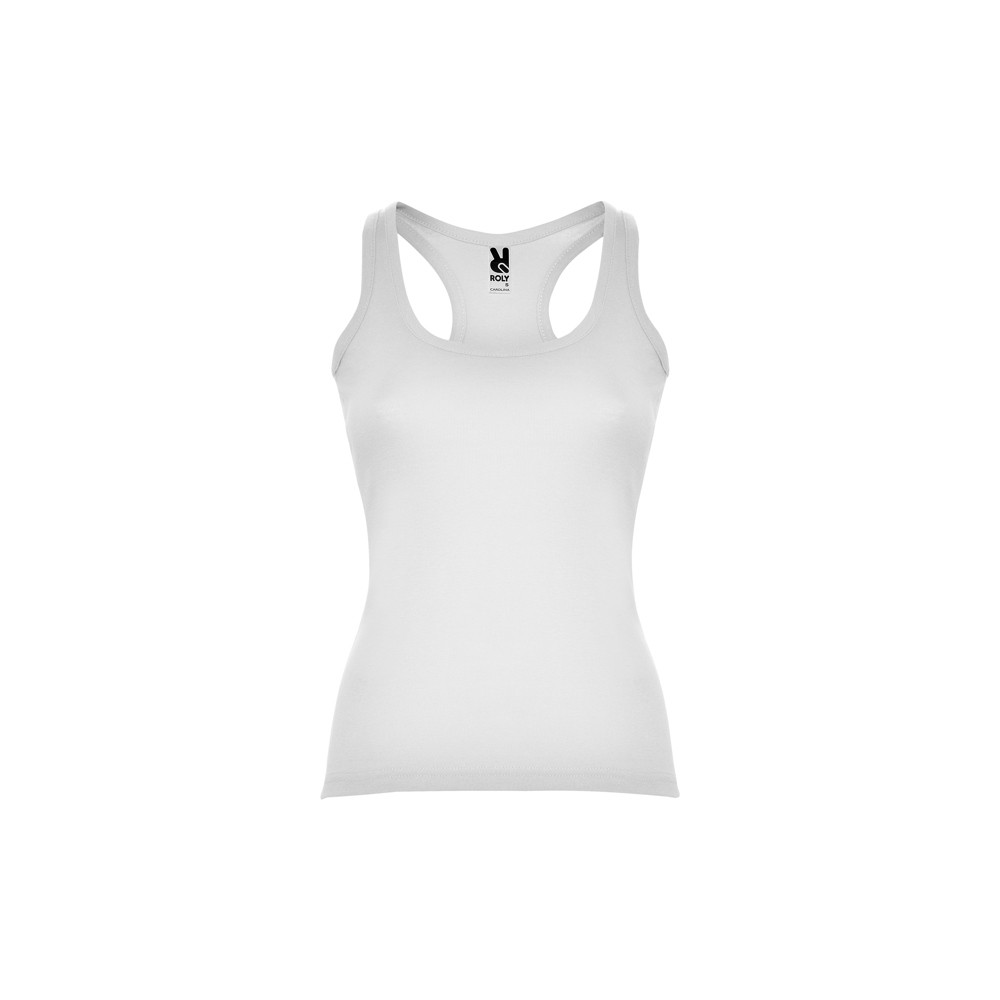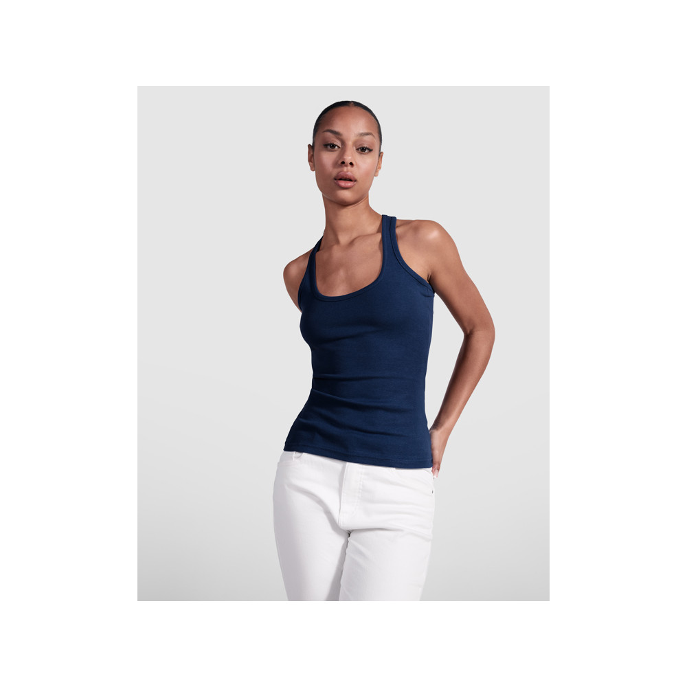 T-shirt coupe près du corps avec encolure et emmanchure liserés. Dos nageur et coutures latérales.