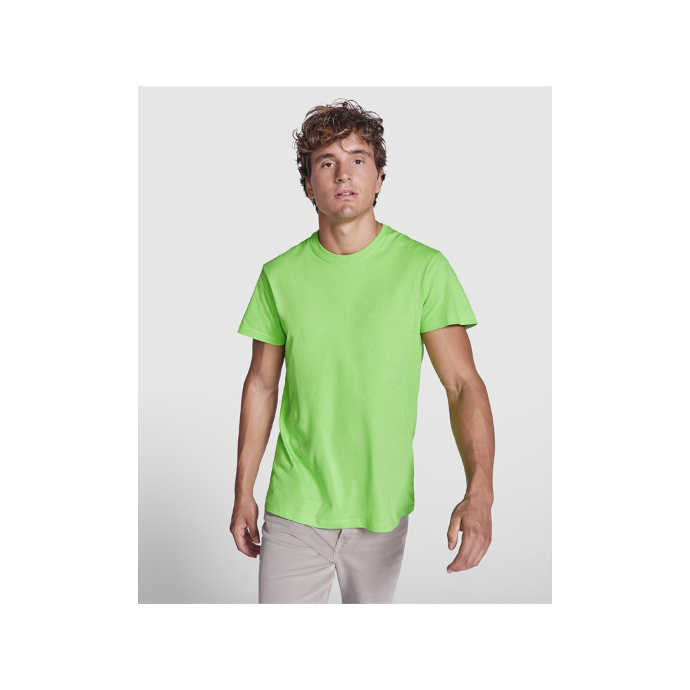 T-shirt manches courtes, col rond quadruple épaisseur et bande de propreté pour encolure et épaules. Coutures latérales.