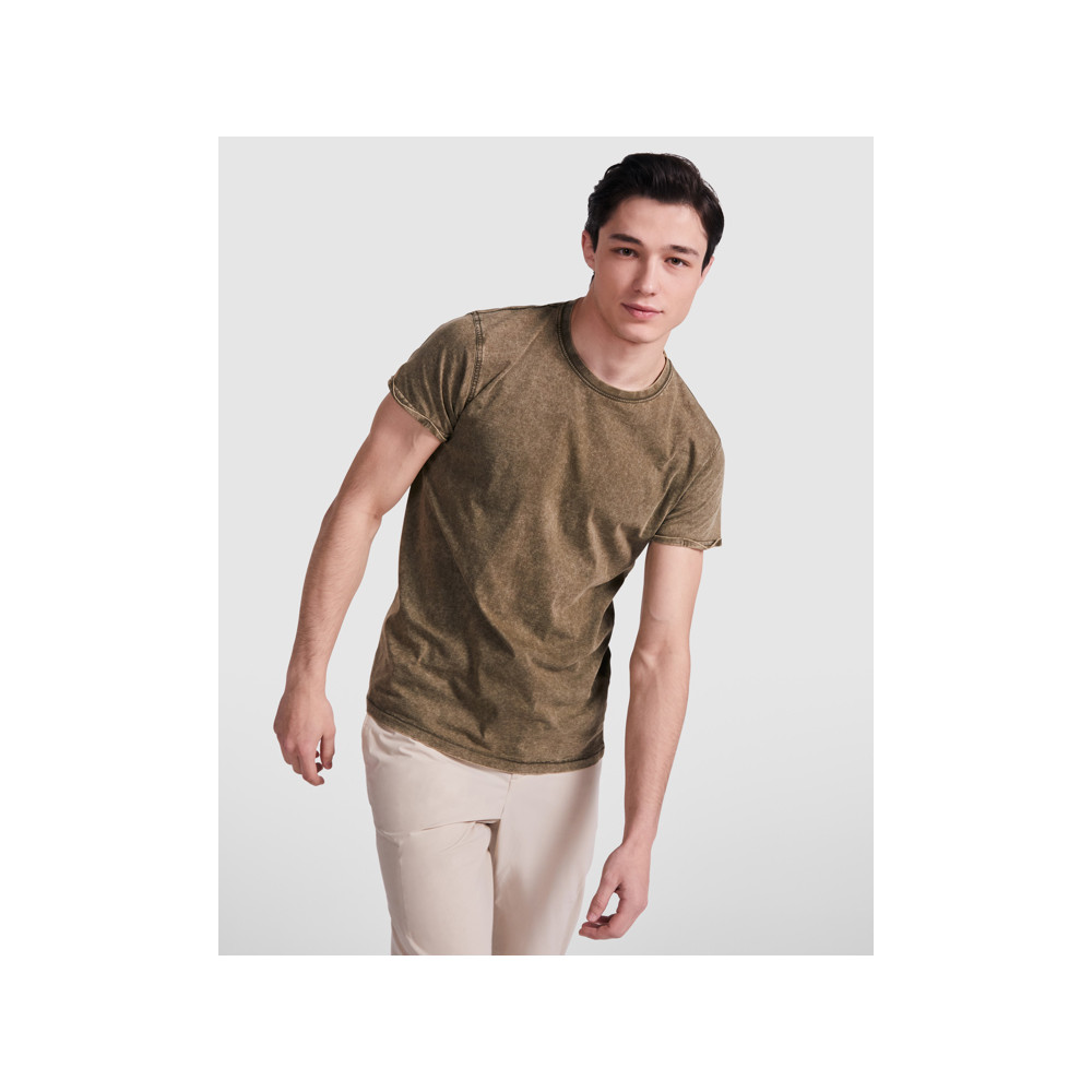 T-shirt manches courtes effet jeans. Col rond maille côte 1x1, avec bande de propreté à l´encolure d' épaule à épaule. Double couture sur emmanchures. Ouverture sur les manches avec ourlet.