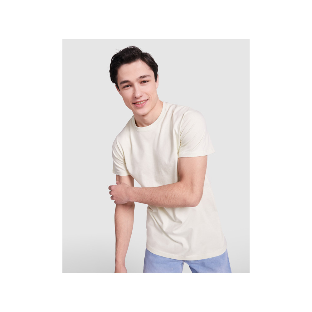 T-shirt tubulaire à manches courtes. Col rond avec élasthanne. Coutures latérales en taille enfant.