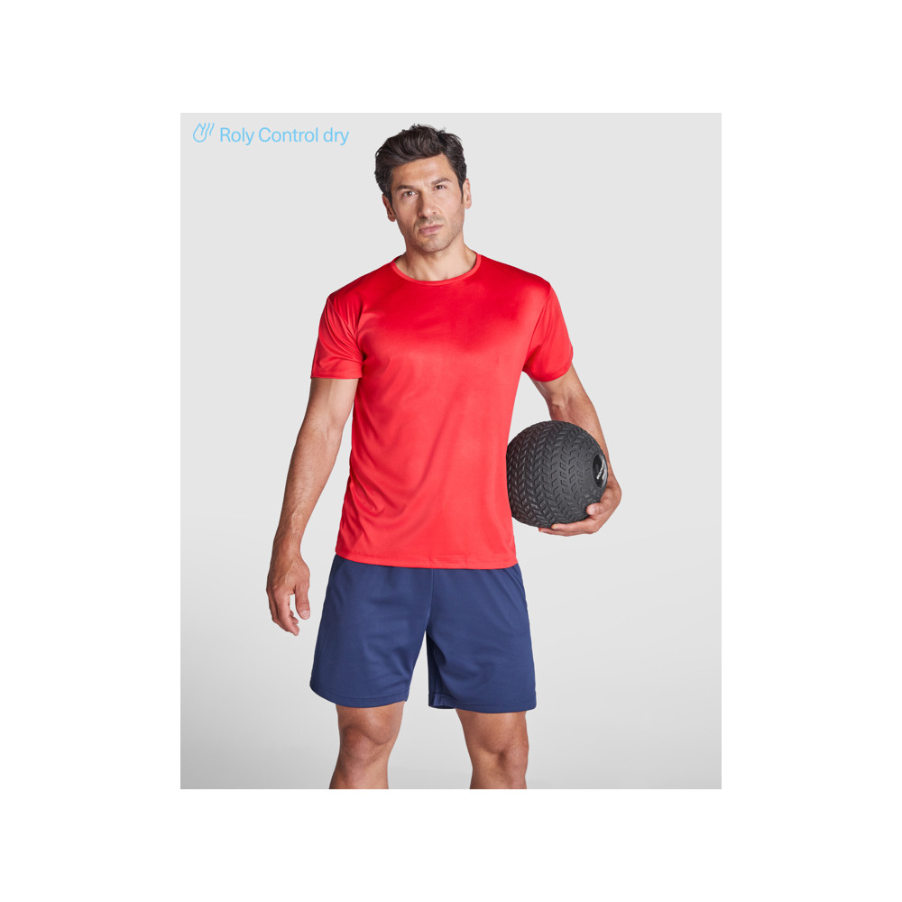 Chemise technique respirante à manches courtes. Col rond avec coutures assorties.