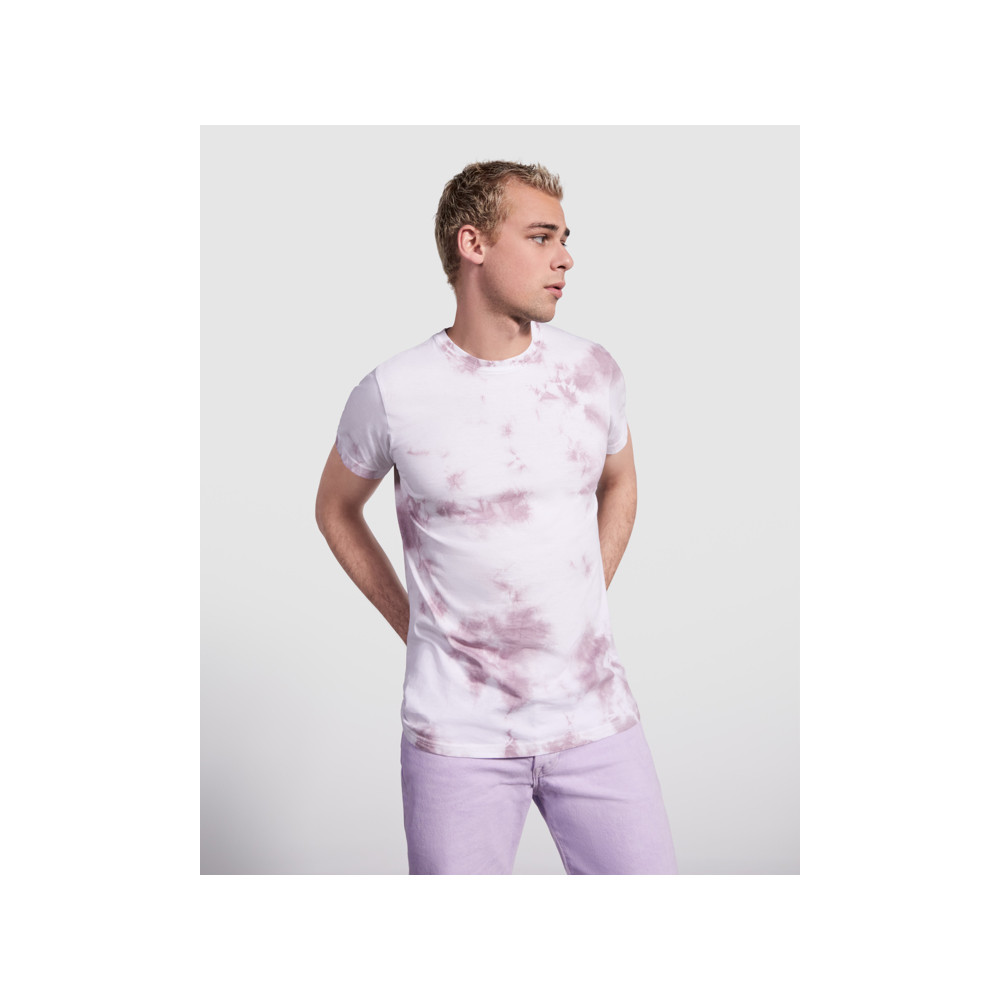 T-shirt unisexe à manches courtes effet Tie Dye. Col rond en côte 1x1 avec coutures et bande de propreté sur le cou. La finition et la tonalité de ce vêtement peuvent varier au sein d'un même ton.