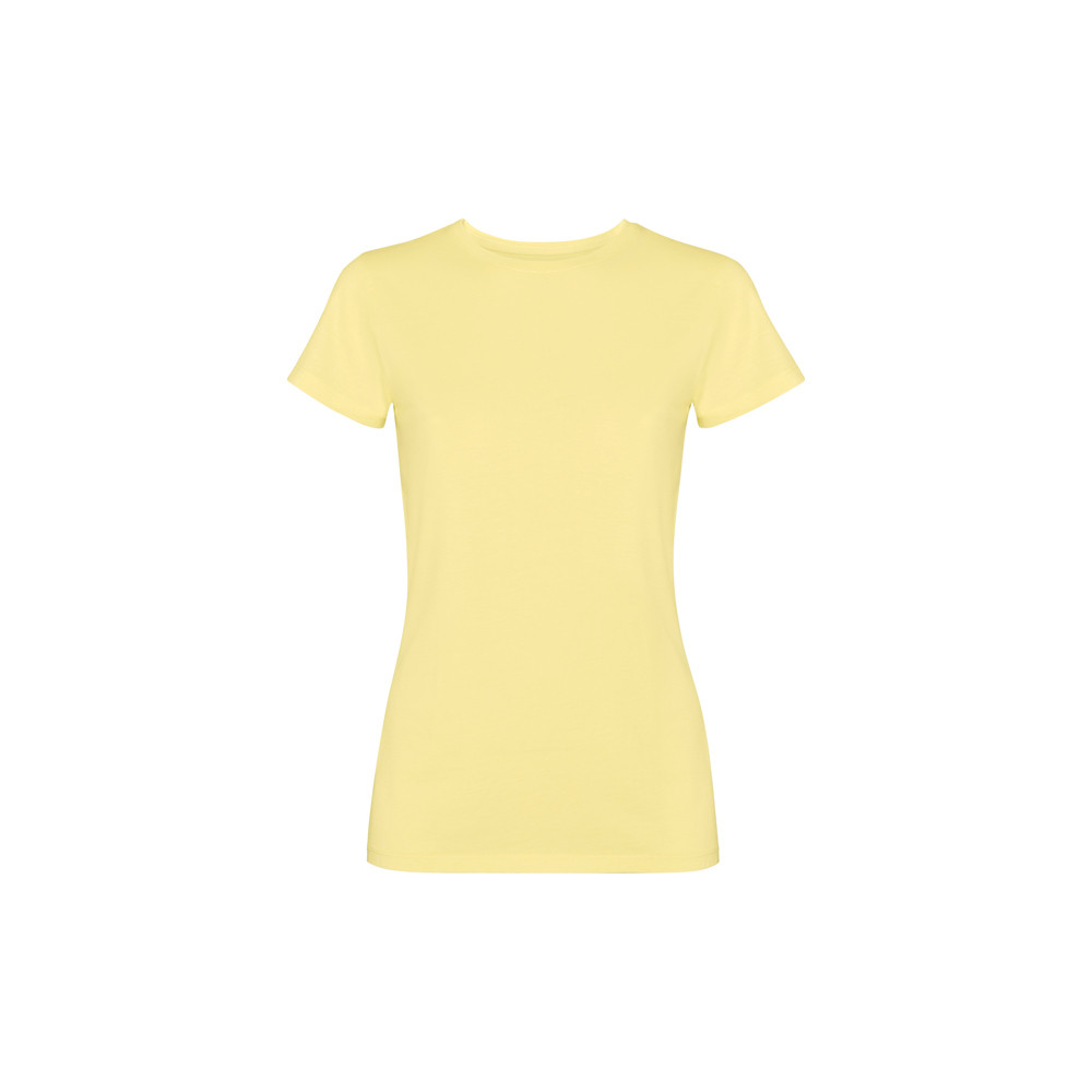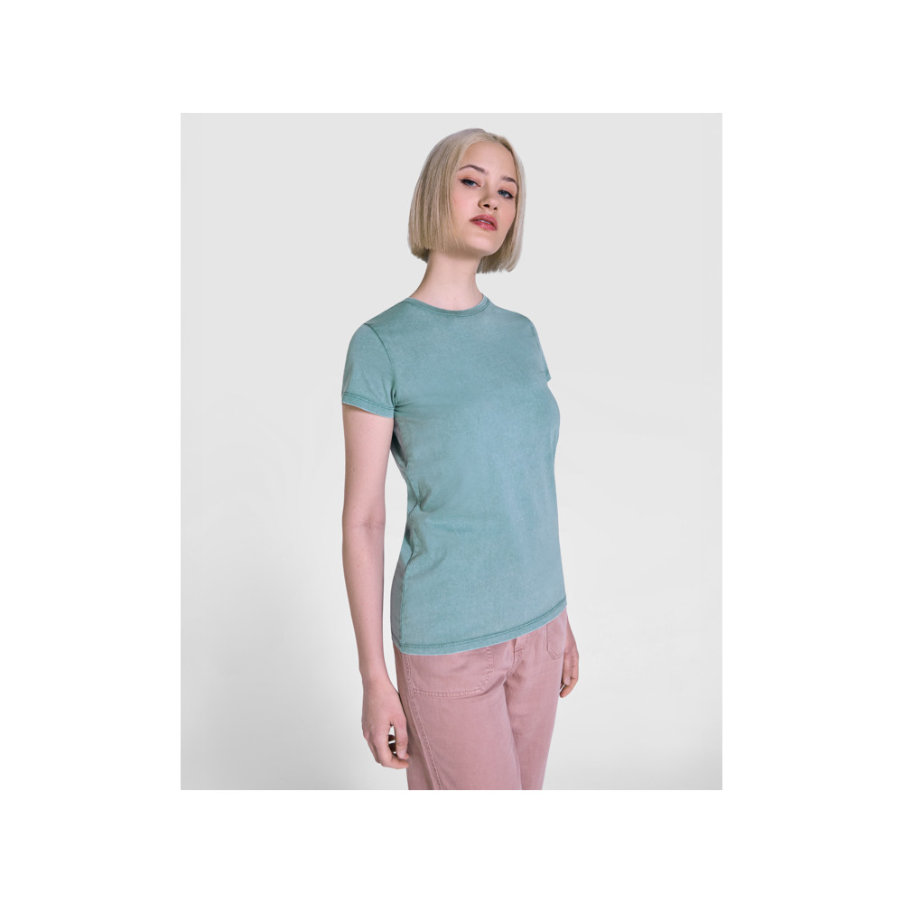 T-shirt à manches courtes pour femme. Coton peigné avec effet délavé. Col rond côtelé 1x1. Encolure bordée de tissu assorti. Coutures doubles sur les côtés et les emmanchures.
