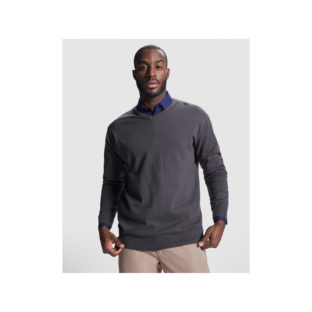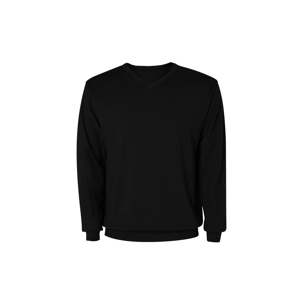 Pull à col V à mailles fines pour homme. Col, poignets et ourlet côtelés 1x1 assortis.