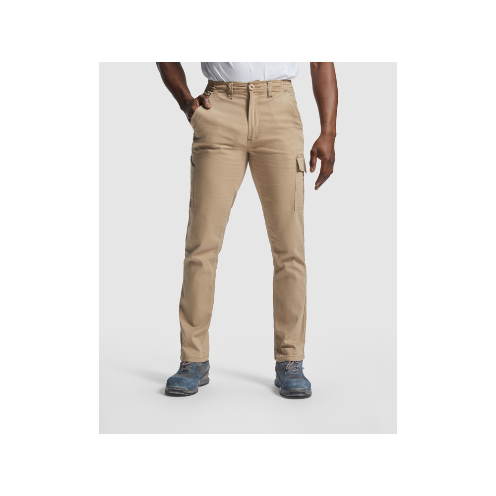 Pantalon épais en élasthanne. Tissu confortable et résistant. Coutures triples renforcées dans l'entrejambe et les côtés intérieurs et extérieurs. Taille élastique réglable sur les côtés. Deux poches avant et deux poches arrière fonctionnelles. La droite avec rabat et fermeture velcro. Deux poches latérales. La droite pour un cutter. Celle de gauche avec rabat et fermeture velcro.